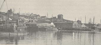 ![]() The steam ferry Little Giant puffs from "over town" into the East Gloucester landing past Gorton-Pew's Reed and Gamage wharf (Beacon Marine Basin today). Eben Parsons snapped his shutter at exactly 5:10 p.m., March 4, 1911, according to his careful record. Before the village here got so grand (after the railroad came from Salem in 1847) as to be called East Gloucester, the whole peninsula that makes the harbor was Eastern Point. It's a mile wide and two and a half long, as the herring gull flaps, from the head of Cripple Cove (a cripple is a swampy thicket) at the bottom of Point Hill, where East Main, Sayward, and Haskell streets collide, out to Dog Bar Breakwater. That's the length of Gloucester Harbor, in two parts. The Outer Harbor between the shores of Eastern Point and West Gloucester is a mile across and almost two long into Pavilion Beach. The Inner Harbor, "safe from all winds that blow," as an old almanac describes it, is a third of a mile across between waterfronts. That's a lot of harbor. This whole peninsula is Cape Ann's cape, displaying the variety, the pockets of paradox, the successes and the failures of the greater Gloucester as on a stage. The important thing about it is the Atlantic Ocean. That's where it gets its fog, and its vitality. East Main Street Not much to look at today, but fifty years ago the waterfront from the Ben Smith Playground on Cripple Cove, where there is a high-tide public landing reached on foot, to the bend beyond Hammond Street was all Gorton-Pew Fisheries. In its glory as a salt-fish producer, Gorton's was a thumping, squeaking, grinding, steaming, chugging, sprawling combine of the Slade Gorton, John Pew, D. B. Smith, and Reed and Gamage companies that kept dozens of wharves and acres of flake yards busy with the unloading, filleting, salting, drying, boning, cutting, grinding, smoking, boxing, packaging, and canning of the millions upon millions of pounds of fish brought back from the North Atlantic banks by their fleets of handsome Gloucester schooners. Along this part of East Main Street, Gorton's processed redfish during the boom that revived the lagging industry in World War II; it kept a smokehouse here, and a plant that turned out codfish cakes by the mile. Ah, that salt fish spread on the flakes, curing in the hot sun, gave off a pungency that in the recollection quickens the pulse and puts the veteran waterfront man in mind of schooners laying to the wharves, sails drying, and the thump-thump of handcarts over loose planks. ![]() A gothic wood engraving of 1875 catches the Eastern Point Light's stark sentinel quality as no photograph could. Lighthouse, Breakwater, and Mother Ann In colonial days a sentinel grove of oaks marked the end of Eastern Point for mariners. This succumbed to time and tempest, and in 1829 the federal government bought an acre and built a stone day beacon, to which a whale oil lamp and a cottage for Keeper Samuel Wonson were added two years later. The lighthouse was built anew on its old foundation in 1848; it was rebuilt in 1890 as it is today, fifty-seven feet above sea level, visible on a clear night thirteen miles (map 7, 12). The revolving lantern and fog bell were first operated by hand-wound clockworks. These gave way to electric motors. A bell was added to the wooden light structure on the far end of Dog Bar Breakwater. Then a radio beacon by the lighthouse. The bells were replaced by electronic horns whose bleats combine in a doleful chorus with the sighs of Mother Ann's Cow, the whistling buoy to the southward. In 1985 everything was automated, and the lighthouse cottage, after a hundred and fifty-four years of occupation by a succession of faithful keepers, was converted to quarters for personnel from the Coast Guard station up in the harbor. The Breakwater, long agitated for, was built 2,250 feet over Dog Bar by the Army Engineers as Congress doled out the funds between 1894 and 1905. Before the granite foundation broke high water, nearly forty confused sailing vessels came to grief on it, some forever. Open from sunup to sundown in calm weather, it's an exciting walk out into the middle of the harbor and a favorite spot for fishing for flounder, mackerel, and pollock. When the swells are breaking over it thirty or forty feet high in the fury of an easterly gale, and the whistler shrieks its distress, it hardly needs mentioning that Dog Bar Breakwater is closed to the public. |